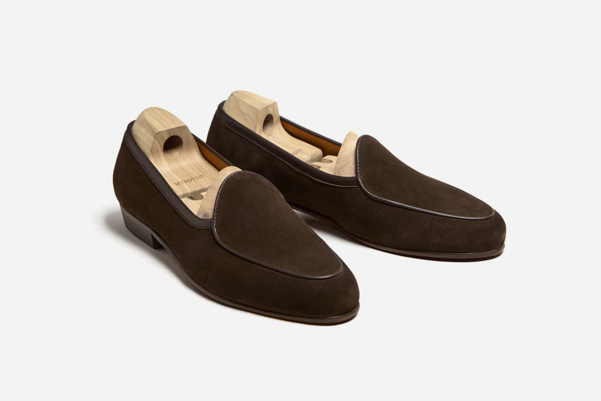 Founded in 2016 with a mission to create timeless, high-quality footwear at a fair price, Myrqvist has grown into a refined brand rooted in craftsmanship and quiet confidence. Designed in Sweden and handcrafted in Portugal, each pair reflects time-honored techniques and a modern eye for proportion. The Ängby dark brown suede loafers embody that philosophy: a Belgian silhouette with a rich suede upper, leather board heel stiffeners, and breathable leather soles built for comfort and elegance. Whether paired with navy wool for high-stake meetings or worn sockless on a coastal escape, these loafers carry taste in a world that notices the quiet details.