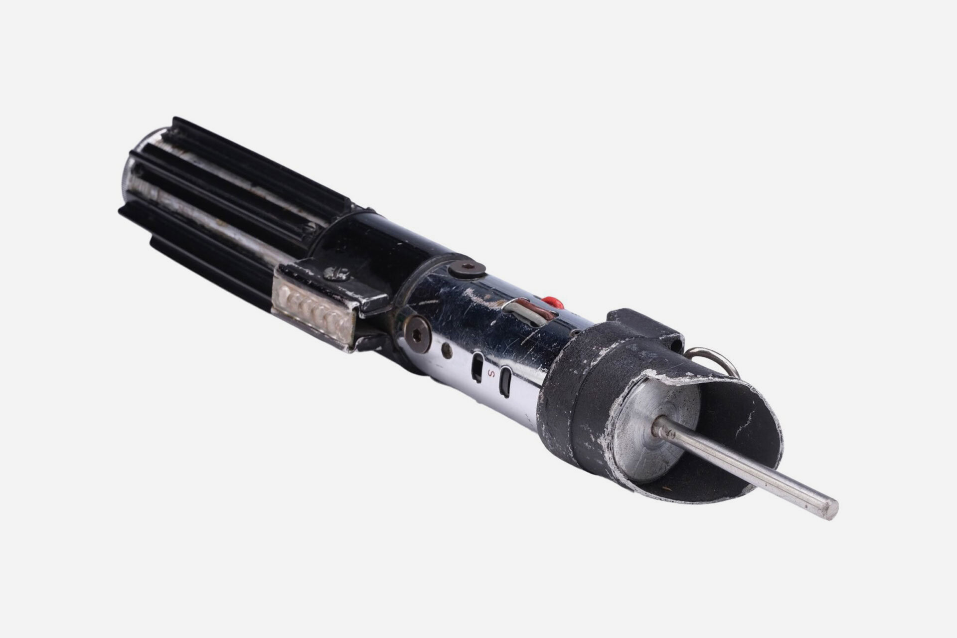 Darth Vader's battle against Obi-Wan Kenobi in Star Wars: A New Hope was extremely short, but his lightsaber played a prominent role in his duels against Luke in The Empire Strikes Back and Return of the Jedi. Now the prop handle that was used on-screen for those iconic films is coming up for sale. Crafted from a vintage British press camera flash handle, the custom piece also has plastic grips, calculator bubbles, cosmetic wiring, and a pole at the top to facilitate mounting of the wooden rods that served as on-set stand-ins for the glowing blades we all remember. It will be auctioned as part of Prop Store's Entertainment Memorabilia sale this September.