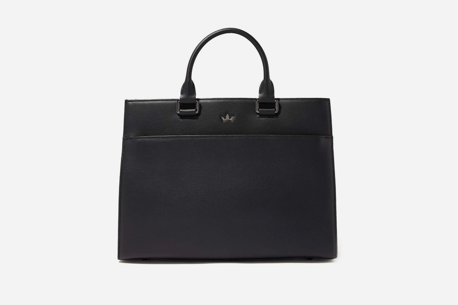 Crafted from soft grained Italian black leather, the Roderer Award Tote Bag is the kind of everyday essential that doesn't just carry your work — it carries your style. Built for the office or a business trip, it moves with you, offering room for documents, a 13" laptop, and interior compartments for your daily tools — keys, pens, you name it. A large front zip pocket adds quick-access storage, while the polished gunmetal hardware and Roderer's signature crown in steel lend it a refined confident edge. Designed for those who value precision, elegance, and quiet luxury — seamlessly moving from boardroom to city streets.