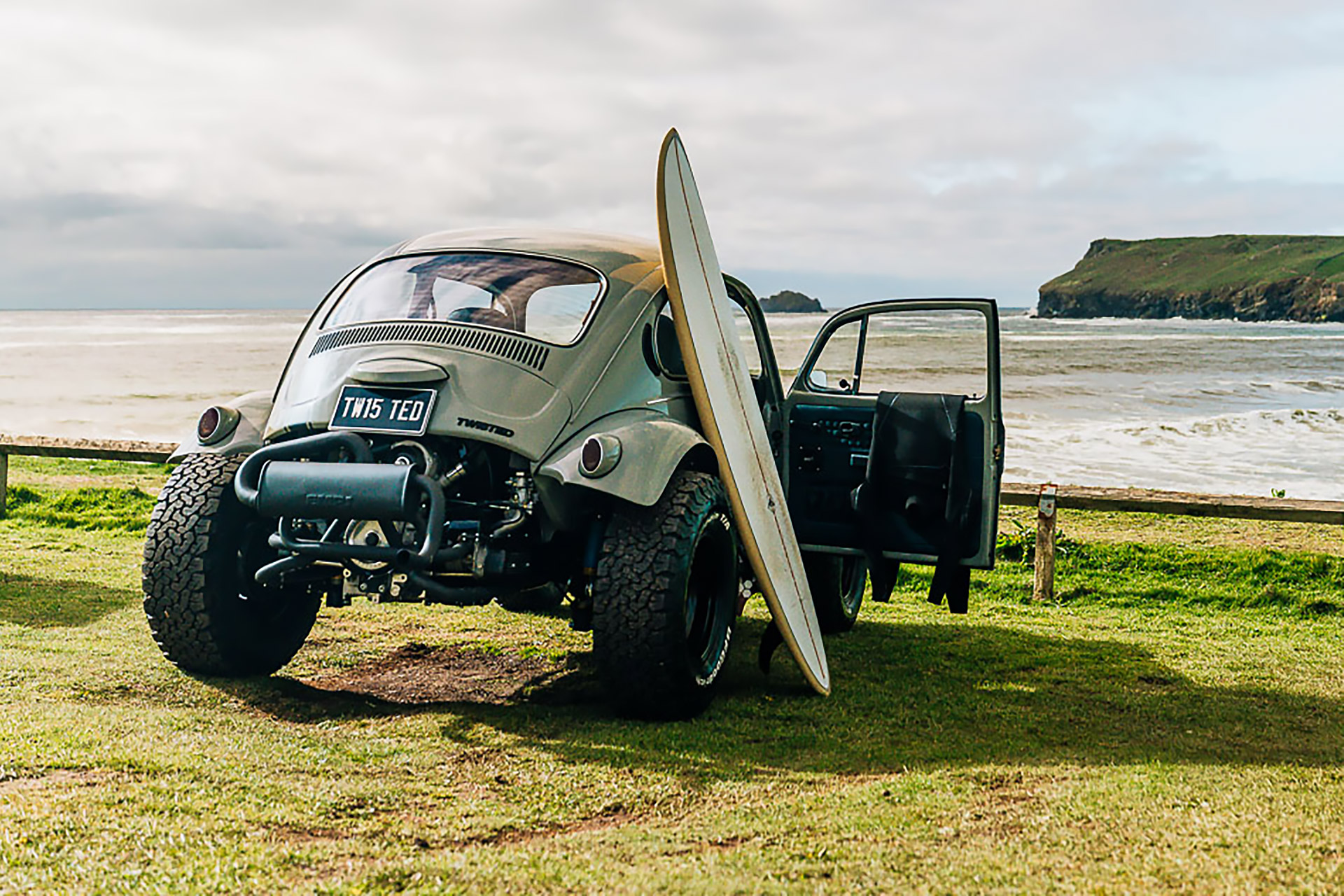 Classic air-cooled Volkswagen Beetles of the '60s, '70s, and '80s were perfect for turning into beach buggies. Twisted Automotive's TBug reimagines these classic sand-loving rides. Each one is bespoke, rebuilt from the chassis up to meet the needs and desires of the owner. Improvements include a strengthened chassis, double the original power output with added reliability, and a long-travel suspension with chunky BFGoodrich tires for off-road capability. The hand-finished interior mixes classic touches with modern electronics and comfort, and features like LED lighting and upgraded brakes improve safety.